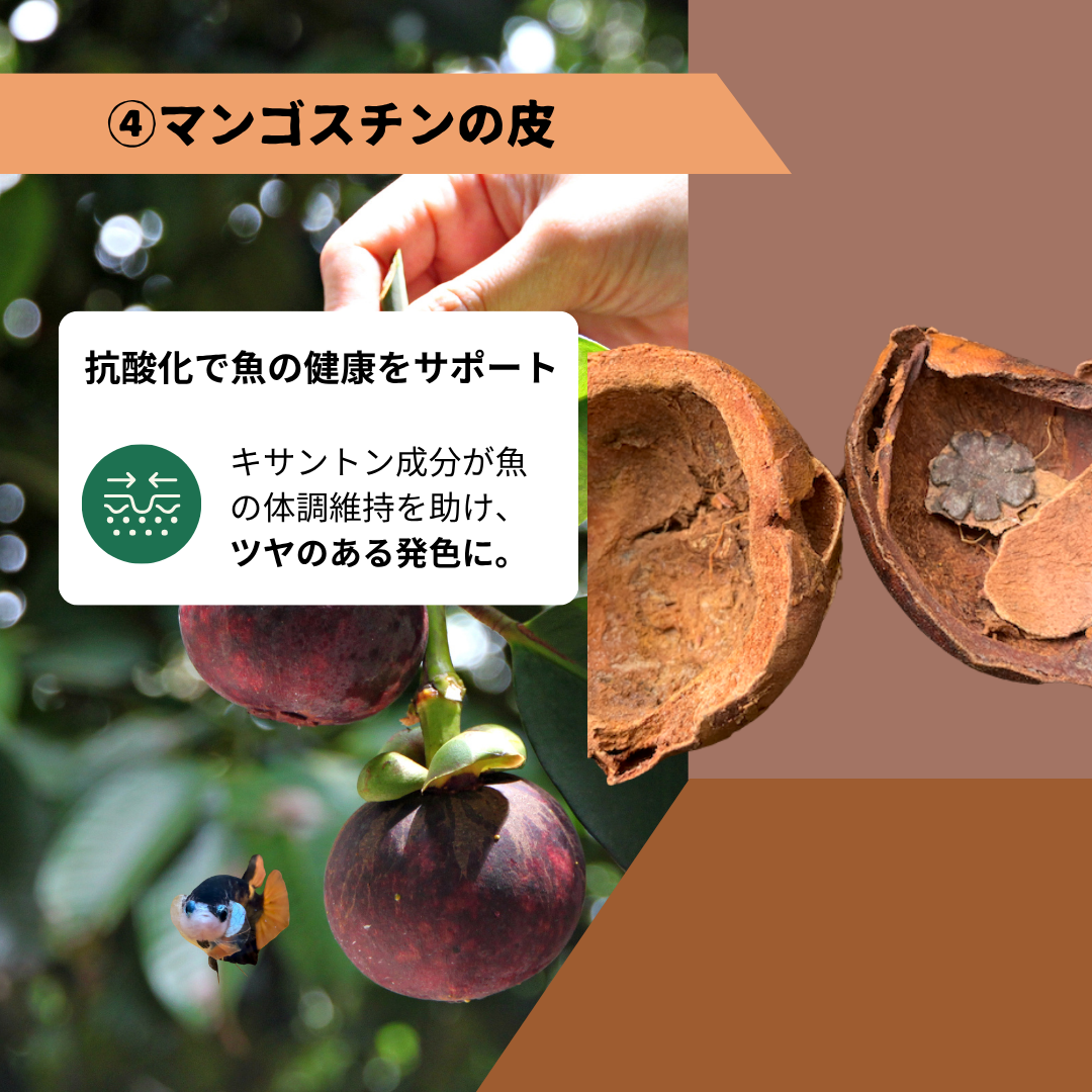 天然のタンニン・カテキン類が体色を鮮やかに引き立てます。 -